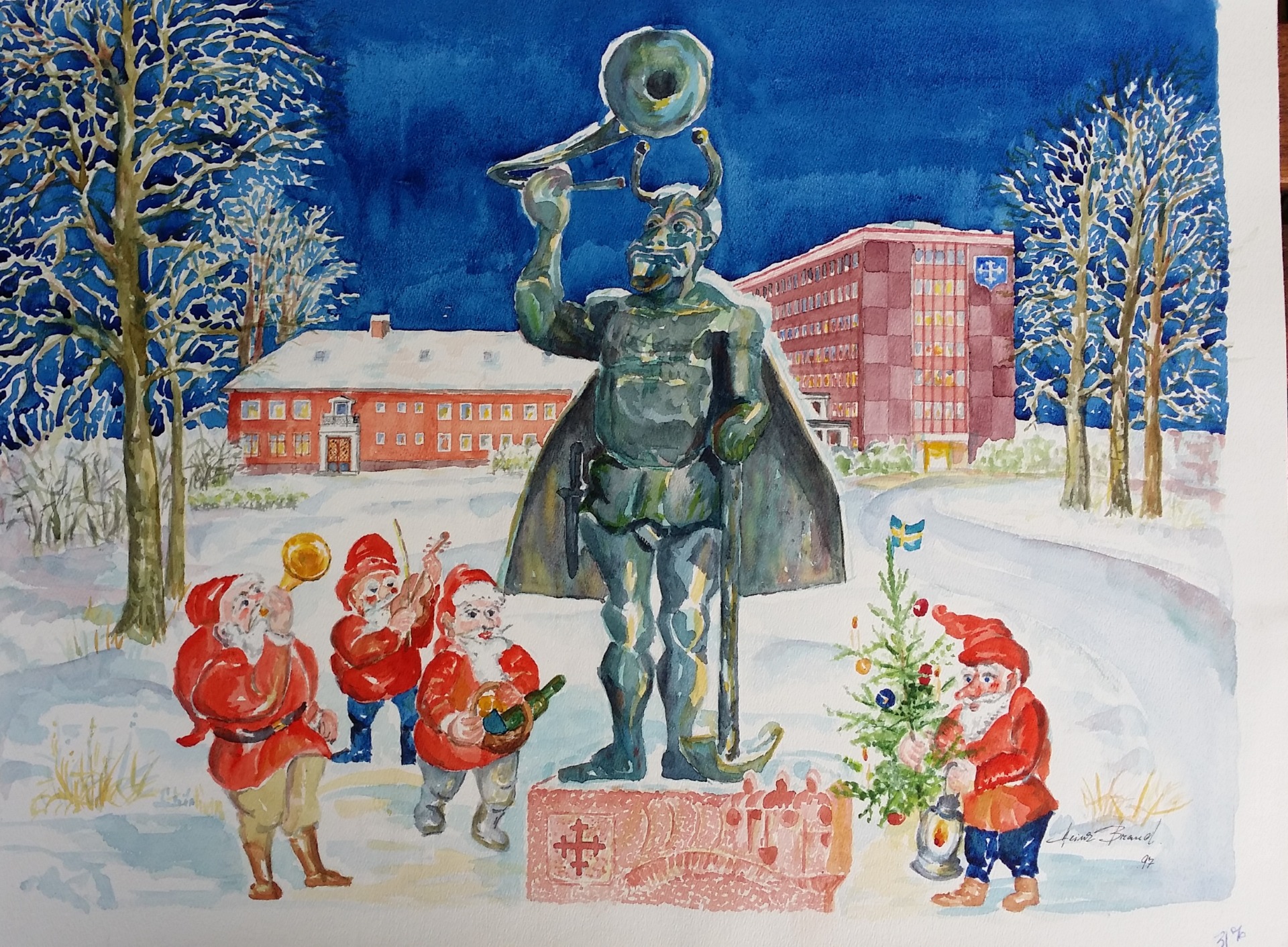 Lions Club Täby ger varje år ut ett julkort med ett motiv från Täbys minnesmärken. Motivet 2017 var Täbys gamla kommunhus som nu är rivet.